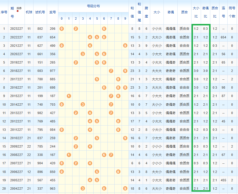 这20期大小比2:1出最多,这期优先选2:1..奇偶比2:1出最多,奇偶比优先选2:1